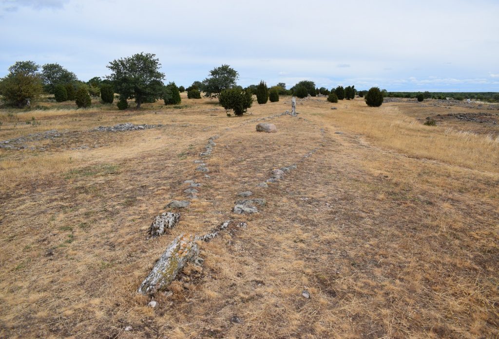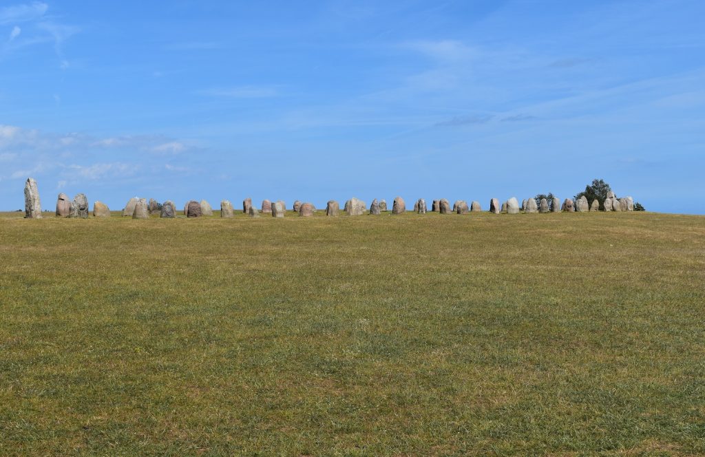Vanuit de haven gaat een korte steile klim naar de Skeppssättning Ales Stenar. Als een reusachtig Vikingschip kijkt het grootste Skeppssättning van Scandinavië over de steile kust uit naar Bornholm. De datering van die monument wordt geschat op zo’n 3500 jaar geleden, in het begin van de bronstijd.