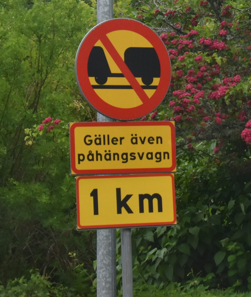 Zweden doen niet zo moeilijk over weg opbrekingen en omleidingen. In Nederland wordt alles afgezet en rijdt je kilometers om, in zweden rij je voorzichtig langs het werk of zetten ze een volgauto in die je moet volgen of ze leiden je als het echt niet anders kan om, desnoods over een slecht zandpad. We hebben het allemaal meegemaakt op deze trip.